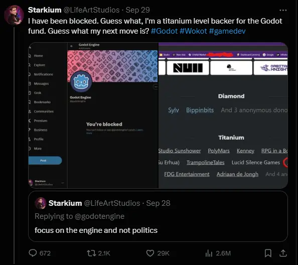 Tidak hanya di X, pengembang yang berkontribusi pada proyek Godot melalui GitHub juga terkena imbas dari kontroversi ini. Blokir ini menambah frustrasi komunitas, karena mereka merasa proyek open-source seperti Godot harusnya terbuka untuk semua orang, bukan dibatasi karena perbedaan pandangan politik.
